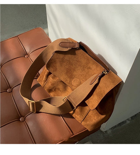 Nubuck PU leather women's Retro large capacity shoulder bag