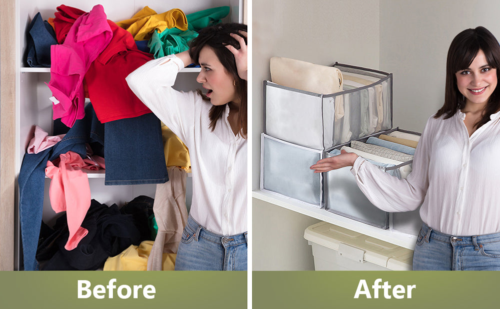 WIDELY USED: Very suitable for storing pants, jeans, sweaters, sweatshirt, underwear/lingerie, bra, panties, innerwear, socks, scarves, leggings, skirts, T-shirts, or baby clothes other items. There are multiple compartments for sorting and organizing your belongings,suitable for storage in drawers, dressing tables, bed bottoms, wardrobes, etc. The jeans organizer for closet helps you take back control of your closet,keep your living space organized.