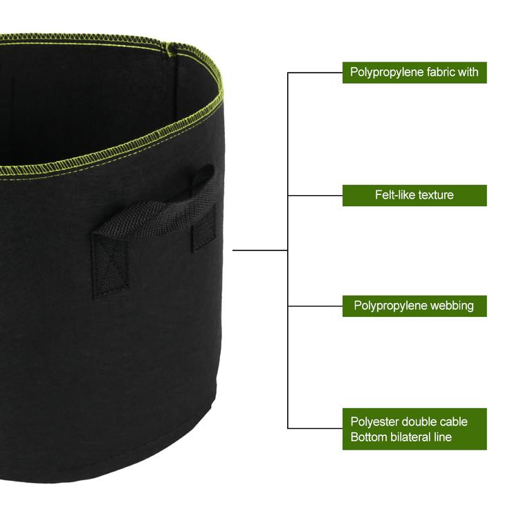 Our bags are made from special felt compound, a polypropylene fabric with a soft, felt-like texture, these pots support healthy root growth and allow the contents to grow healthily and freely.