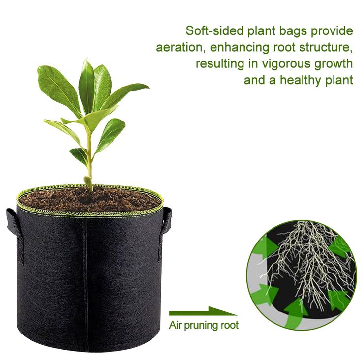 Grow bags secret is air root pruning! Soft-sided plant bags provide aeration, enhancing root structure, resulting in vigorous growth and a healthy plant.