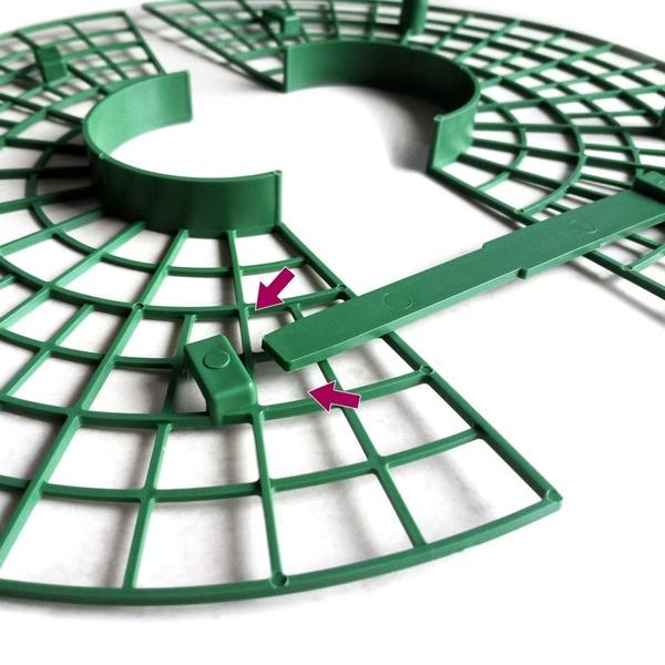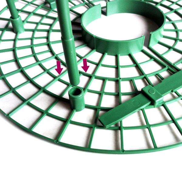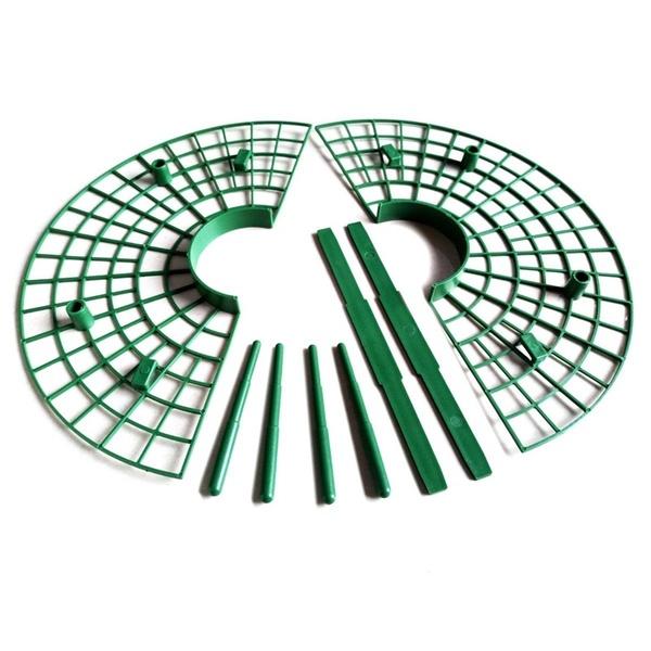 The plastic supports are 30cm in diameter,4 stakes and 2 rails