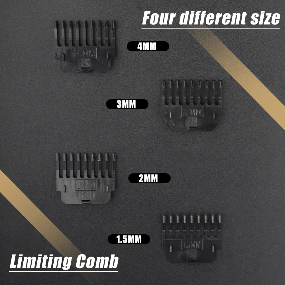 Package list:you will get1Pcs* hair trimmer, 1Pcs* brush, 4Pcs* limit comb(1.5MM 2MM 3MM 4MM) and 1Pcs*USB Charger