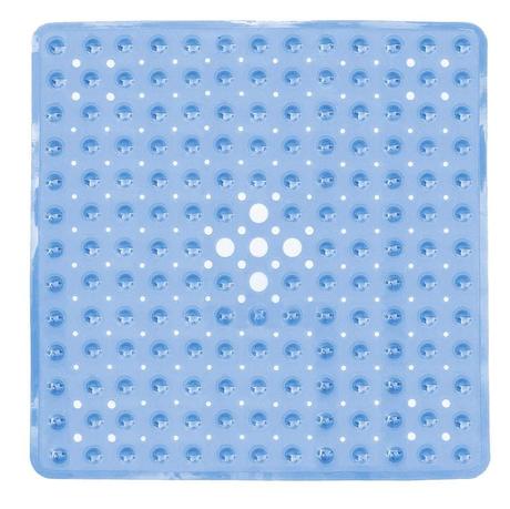 Shower mat with round raisers on the top and suction cups on the bottom, offers the best safety solution.