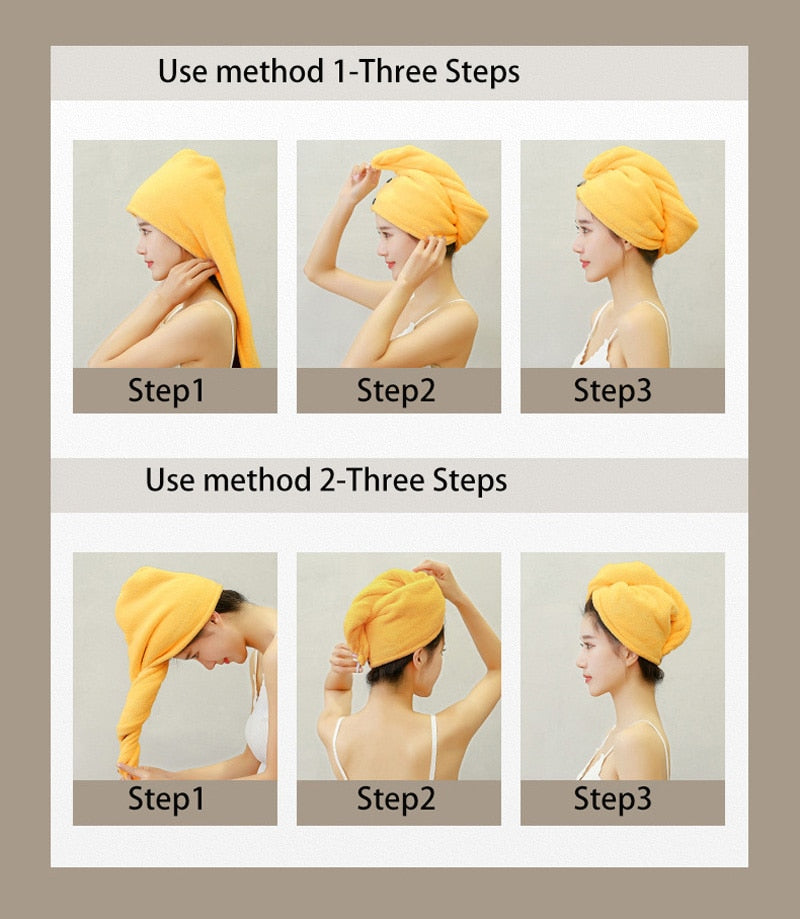 Ultra-fine fibers(microfibers) are only 1/100 of the hair, which can absorb and diffuse water as quickly as capillary phenomena. After absorbing water. the surface of ultra-fine fibers is still extensive, so the evaporation time of moisture is fast, there is always a comfortable and dry experience at any time. It can quickly absorb excessive moisture on the hair, make hair dry while not letting the water loss of hair itself, nouishing and moisturizing hair without damaging hair quality, So you are no longer worried about the use of hair dryer damage to the hair, long and short hair are applicable, No more trouble of hair washing in the winter.