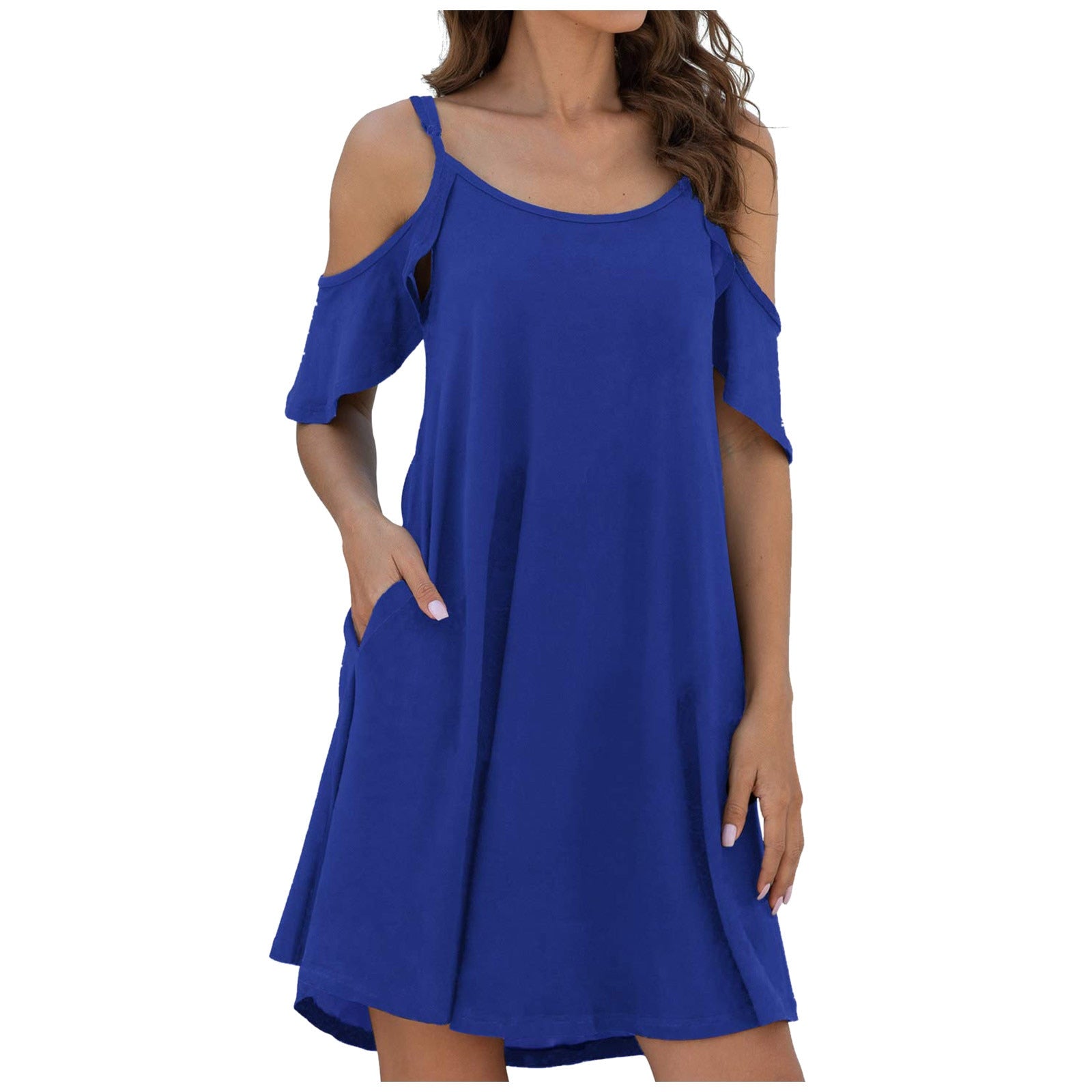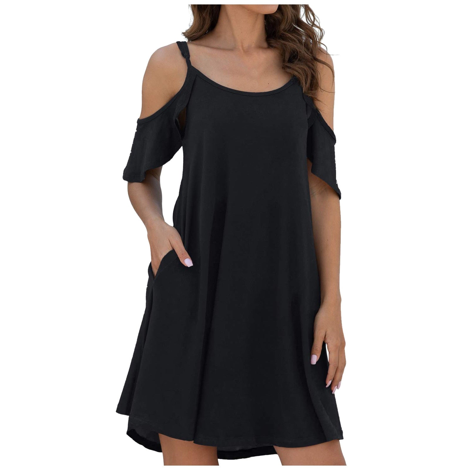 • Load image into Gallery viewer, Women's Summer Dresses Casual Dress Cold Shoudler Robe Ruffle Sleeves Dresses